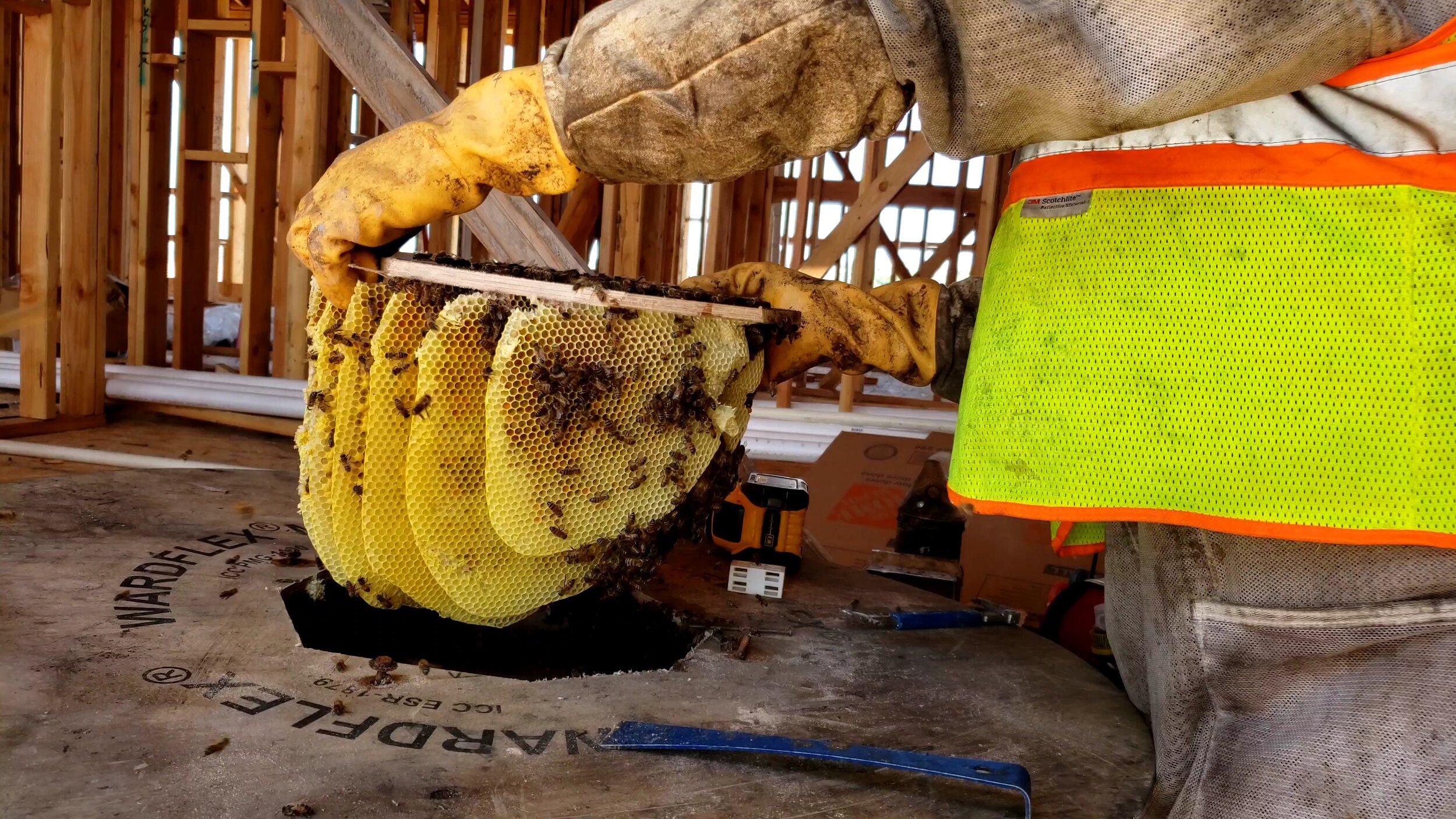 Timing is key. Honeybees build FAST. They start building honeycomb right away - in only two days they can build TWO sheets of honeycomb! As soon as you spot bees living in or on your property, call us. You’ll thank us later :)